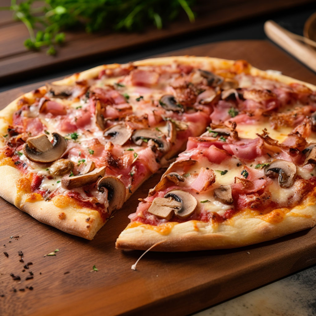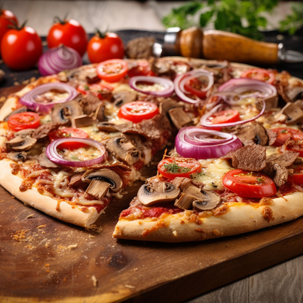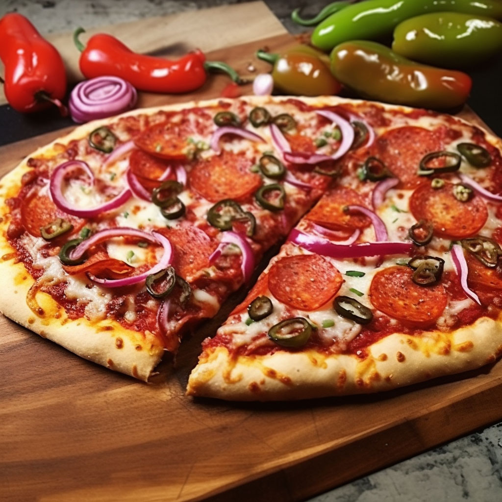 pizza sauce, tuna, green peppers, mushrooms and onions